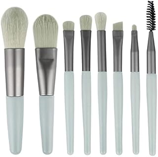 8pcs メイクブラシ ポータブル トラベル 木製ハンドル 初心者 ミニ メイクツール 専用ケース付き (ライトブルー)