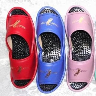 ルームシューズ 足ツボマッサージ 健康サンダル スリッパ指圧 足つぼマッサージ 天然石 静音で軽量 滑り止め 春夏秋冬スリッパ お洒落で快適 size 24CM (レッドB)