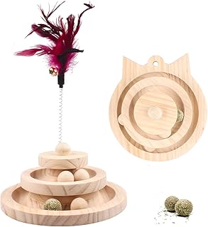 品 猫 おもちゃ ぐるぐる回転 タワー 四層 ストレス解消 猫じゃらし 木製 ナチュラル ペット用品 天然鳥の羽棒鈴付き (キャットニップ ボール 2個入り)