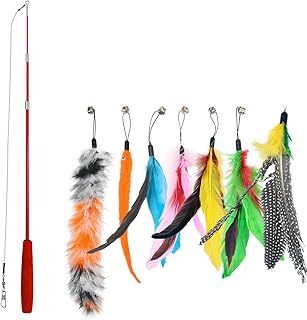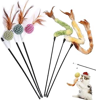 Aidiyapet 猫おもちゃ 猫じゃらし ねこ おもちゃ 弾性子猫のおもちゃ 天然鳥の羽棒鈴付き 猫 おもちゃ 人気 一人遊び 運動不足解 猫のおもちゃ(6点セット)