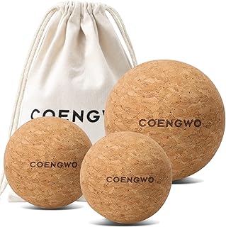 COENGWO Massage Cork Ball - Yoga Therapy Cork Ball Set For Muscle Relief, Massage Cork Roller Ball With Carry Bag (3’’+ 2.4’’+ 2.4’’Ball)