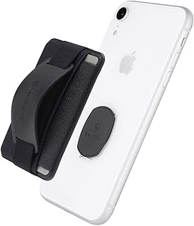 Sinjimoru 無線充電対応 スマホスタンドカード入れ、専用マウントで固定するカードホルダー SUICA IDカードなど3枚のカード収納できる着脱可能カードケース、落下防止 ハンドストラップにどこでも楽に動画 視聴できるスタンド機能付きiPhoneカードケース。Sinji Mount B-Grip, ブラック