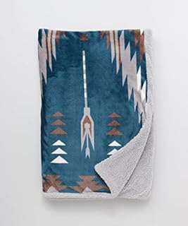 Ruth&Boaz エスニック ネイティブ柄 ブランケット ラグ (K) ブルー アッシュグレー (154cmx147cm) (154cm×220cm)