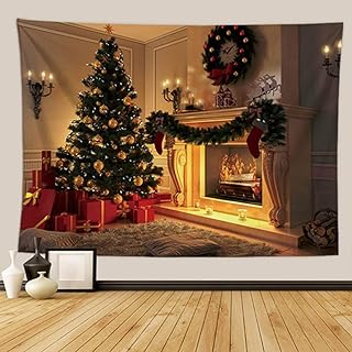 ジャション メリークリスマス タペストリー 暖炉 クリスマスツリー クリスマスソックス 壁掛けタペストリー 壁飾り 家 リビングルーム ベッドルーム 部屋 おしゃれ飾り 150X130CM (Xmas Fireplace)