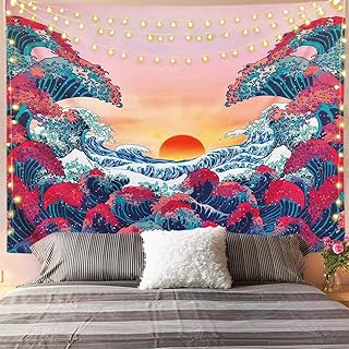 ジャション 大波と夕日 壁掛けタペストリー 壁飾り 家 リビングルーム ベッドルーム 部屋 おしゃれ飾り 150X130CM