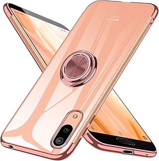 AQUOS sense3 ケース/AQUOS sense3 basic ケース/AQUOS sense3 lite ケース/Android One S7 ケース リング クリア TPU 透明 耐衝撃 シリコン 薄型 メッキ加工 車載ホルダー SH-02M / SHV45 / SH-RM12 / SHV48 カバー ローズゴールド
